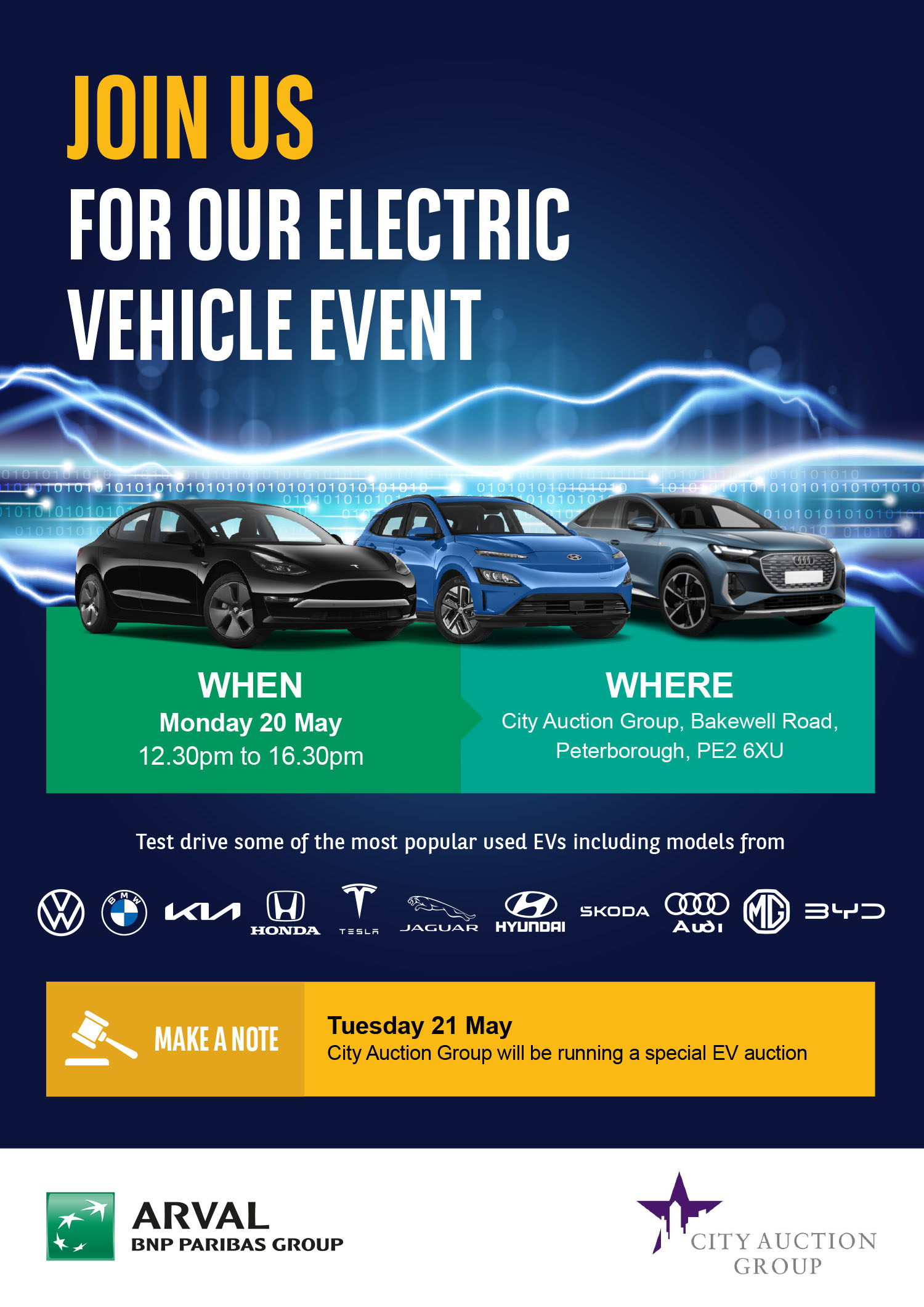 Tomorrow Tuesday City Auction Group offer 400 corporate vehicles with a dedicated selection of ARVAL EV’s commencing at 10am.