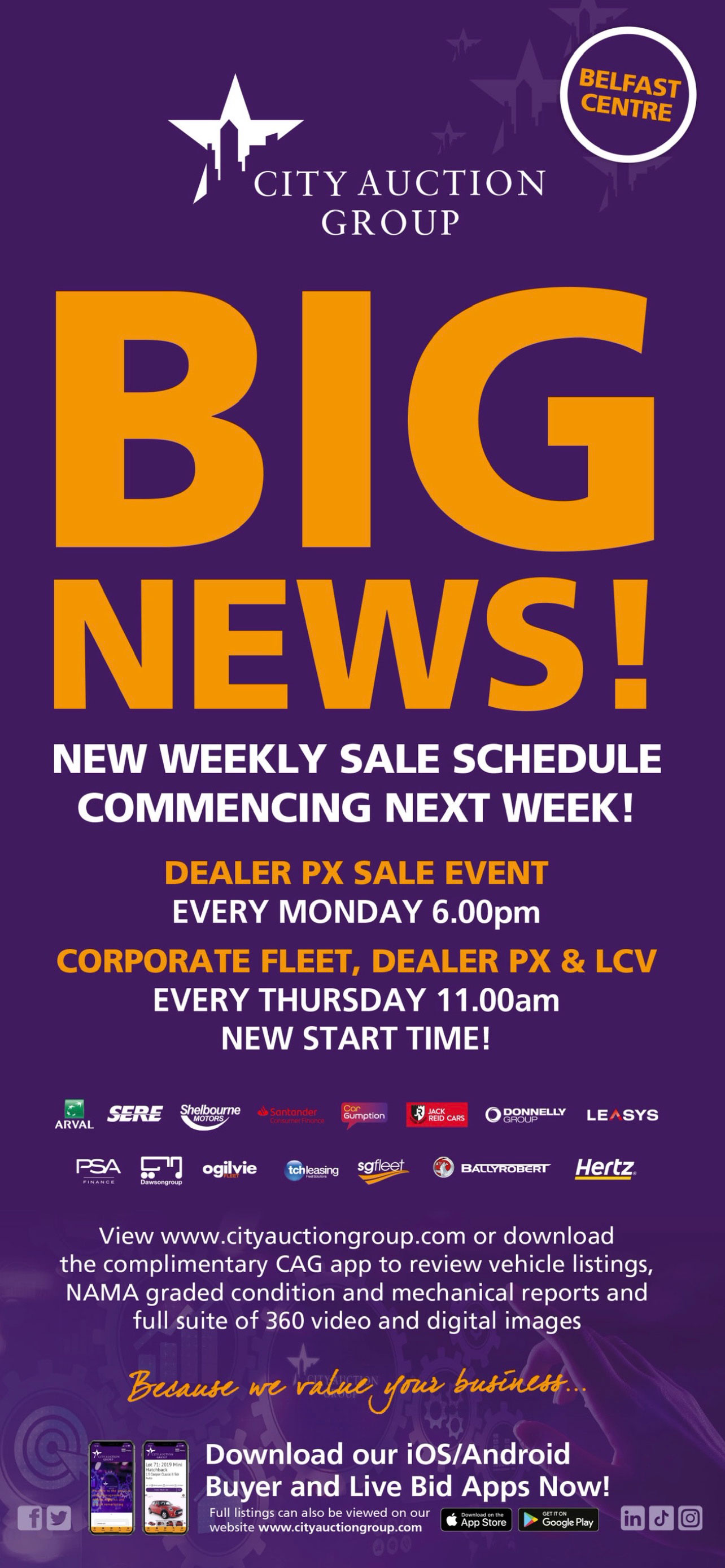 Due to increased volumes and new business wins the weekly sales will be more regular to ensure we sell vehicles quicker than ever before with physical auction events supported by live online availability and as always every vehicle driven through the lane.