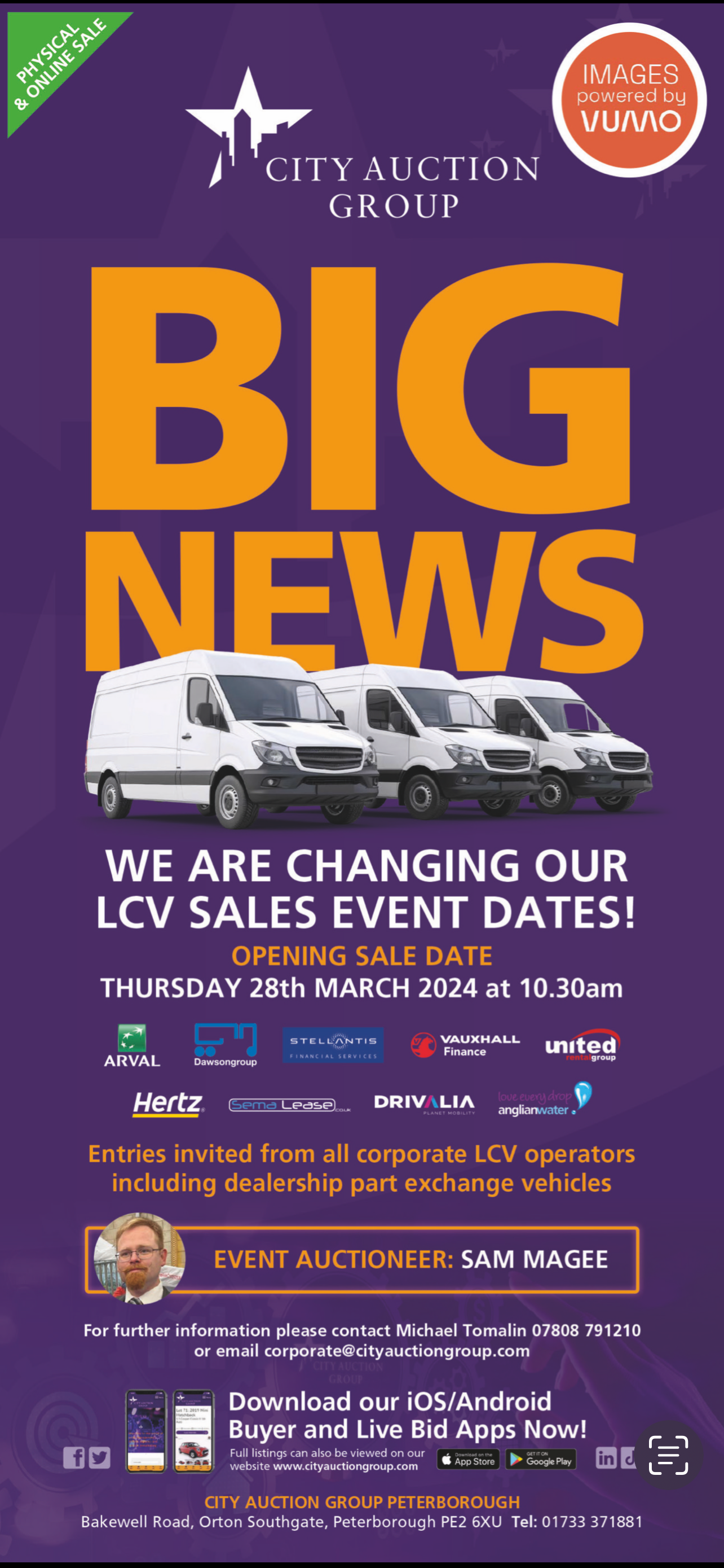 More exciting news is that Sam Magee our new Head of LCV will be joining us at his opening sale as event auctioneer. He has immense experience in the LCV sector at BCA and more recently Manheim and we are delighted to welcome him to the fastest developing defleet, logistics and remarketing business in the UK and Northern Ireland.